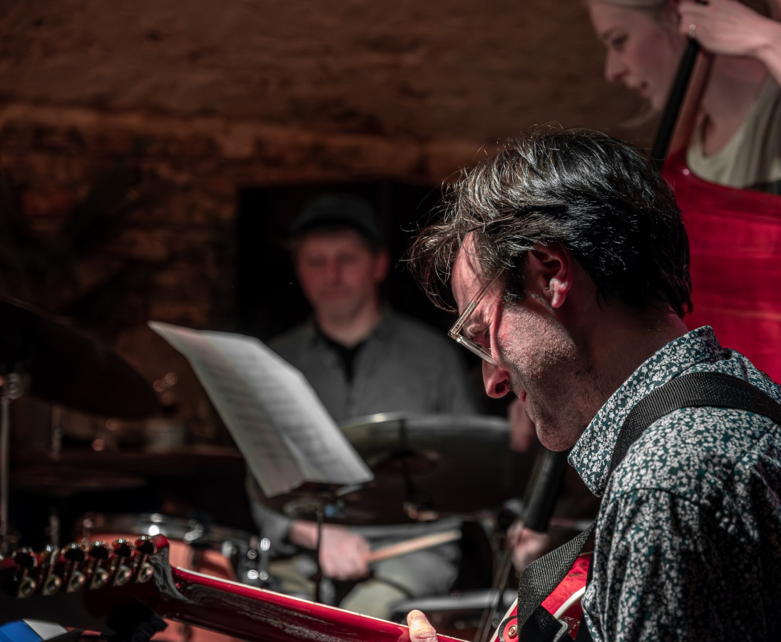 En wat een mooie, spannende en creatieve muziek lieten deze musici ons horen. Het trio bestaat uit Guillermo Celano op gitaar, geboren in Buenos Aires, Bjørk Semey op de contrabas oorspronkelijk afkomstig uit Zweden en Denemarken en nu gevestigd in Amsterdam. Marcos Baggiani opgegroeid in Buenos Aires en verhuisde naar Amsterdam.
