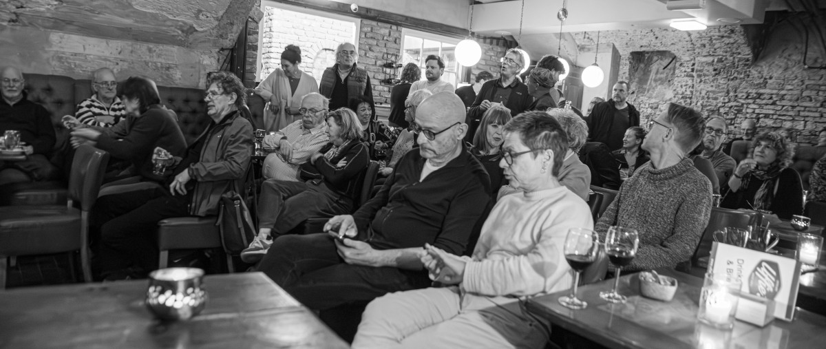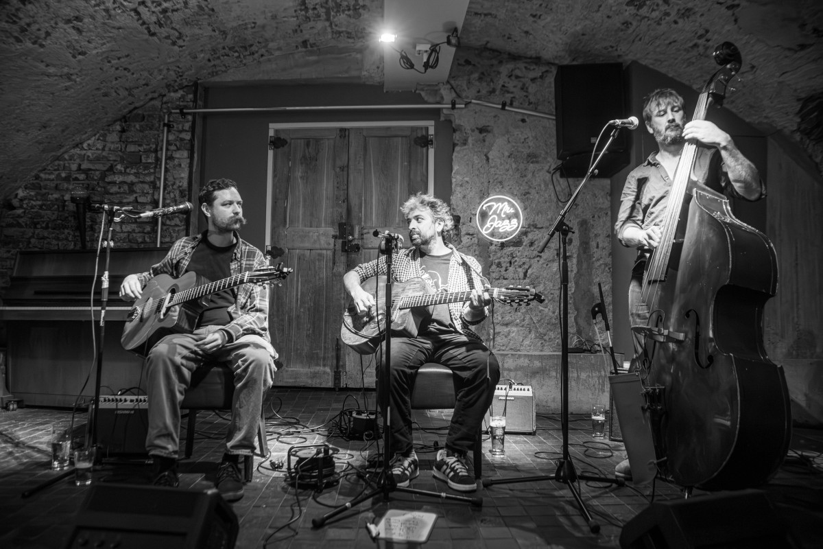 De kelder van Uffies zat afgelopen donderdag helemaal vol in afwachting van het Guillermo Celano gitaartrio.